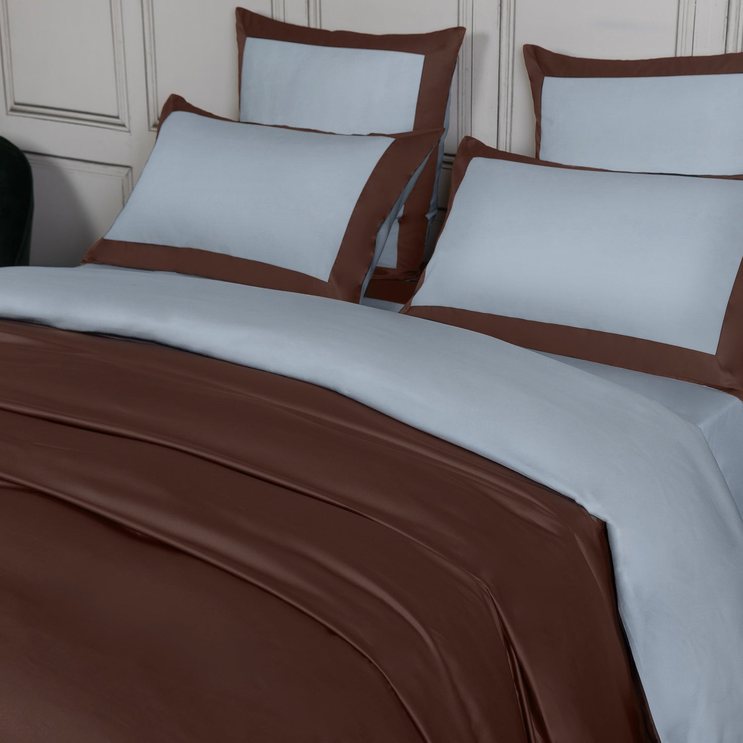 1 federa per cuscino in raso di cotone setificato 300 TC con bordi a contrasto